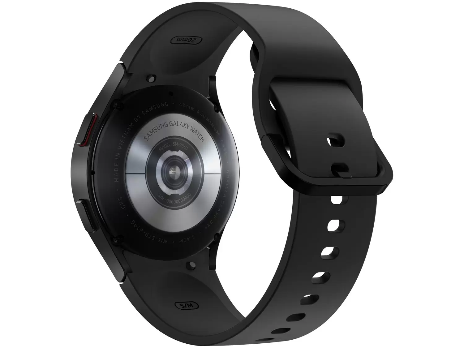 O Galaxy Watch4 BT da Samsung é o smartwatch que oferece o mais completo conjunto de soluções para monitoramento da saúde, bem-estar e Fitness. Através da novidade do recurso Bioimpedância que permite medir e acompanhar a composição corporal de maneira simples e rápida, para que você acompanhe os resultados dos exercícios refletidos no seu corpo. Além de uma série de funções avançadas para monitorar a evolução nos mais de 90 tipos de treinos. Com o novo sistema operacional Google Wear OS Powered by Samsung e a memória de 16GB, incorpora maior disponibilidade de aplicativos e integração do smartwatch com o smartphone. O desempenho de hardware foi aprimorado através de um Processador mais rápido, Visor mais claro, Carregamento mais rápido e mais sensores atualizados. Com uma bússola incorporada você pode se orientar na direção certa enquanto você curte as suas trilhas preferidas. O seu design minimalista acompanha o seu estilo, a caixa do relógio é produzida em material alumínio reforçado, além de resistente seu formato proporciona conforto e inovação no pulso. Disponível com tamanho de 40mm e pulseira preta, os seus recursos e aplicações vão facilitar o seu dia-a-dia seja no lazer ou no trabalho, como o controlador de câmera, controlador de músicas remoto, controle de PPT, e pagamento móvel por meio do Samsung Pay.